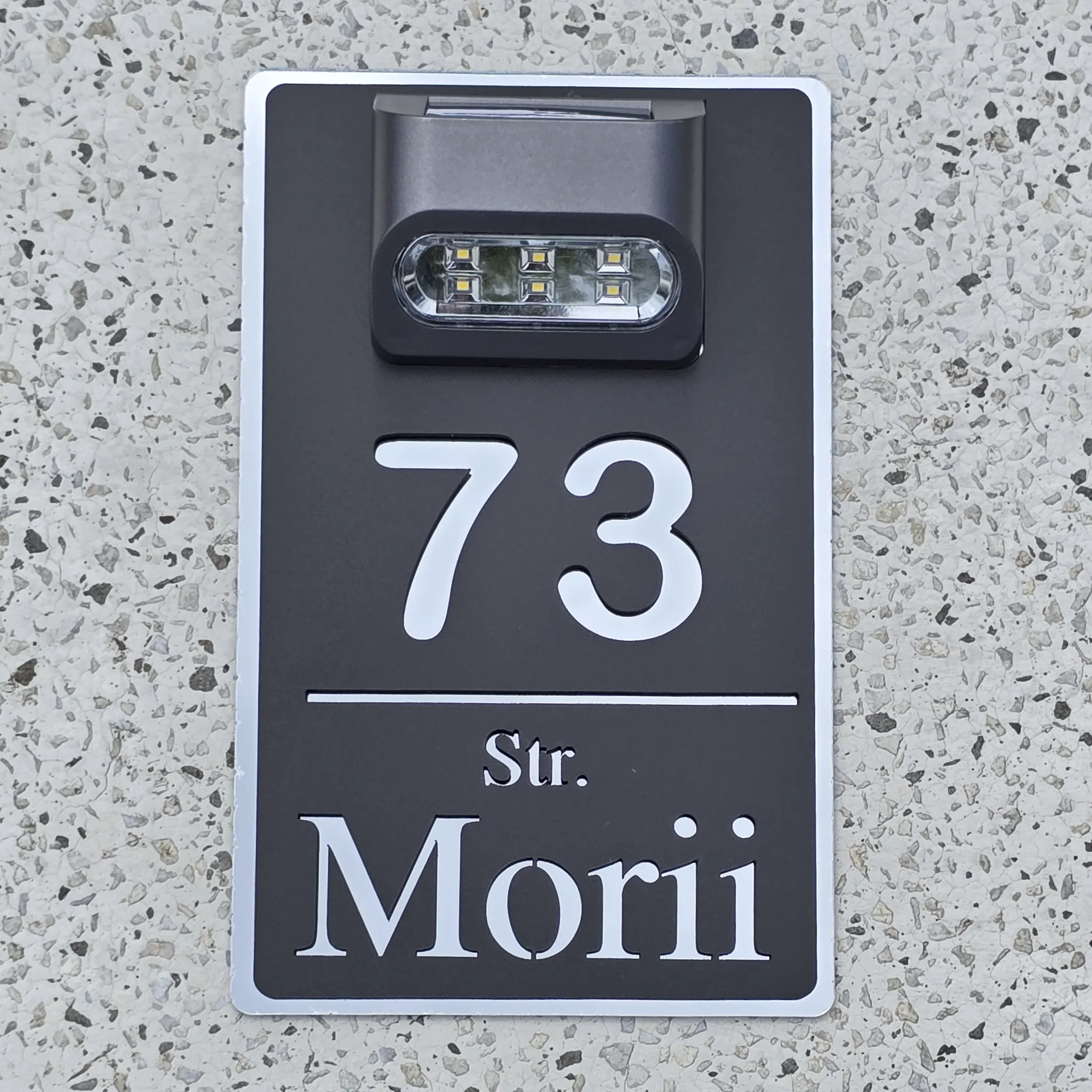 Numar casa premium cu lampa solara Argintiu cu Negru Satinat